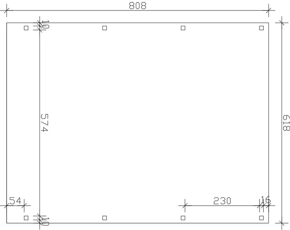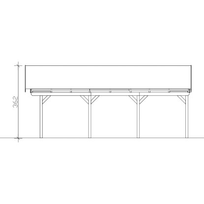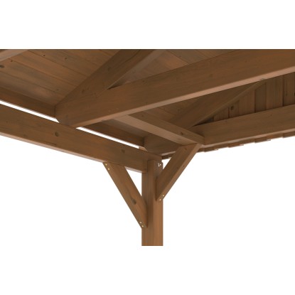 Strecha prístrešku je dodávaná s 19 mm strešným debnením z masívneho dreva na zakrytie strešnými šindľami (súčasťou dodávky) alebo v škridlami (nie sú súčasťou dodávky). Stĺpiky prístrešku sú veľmi odolné o rozmere 12 x 12 x 220 cm a dodávané vrátane hmoždiniek. H-kotvy 60 cm z pozinkovanej ocele učenej na zabetónovanie do vlastného bodového základu sú súčasťou dodávky vrátane montážneho materiálu a návodu. Kotvy pevne spájajú stĺpiky s podkladom a zaisťujú vysokú stabilitu.