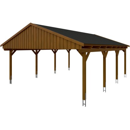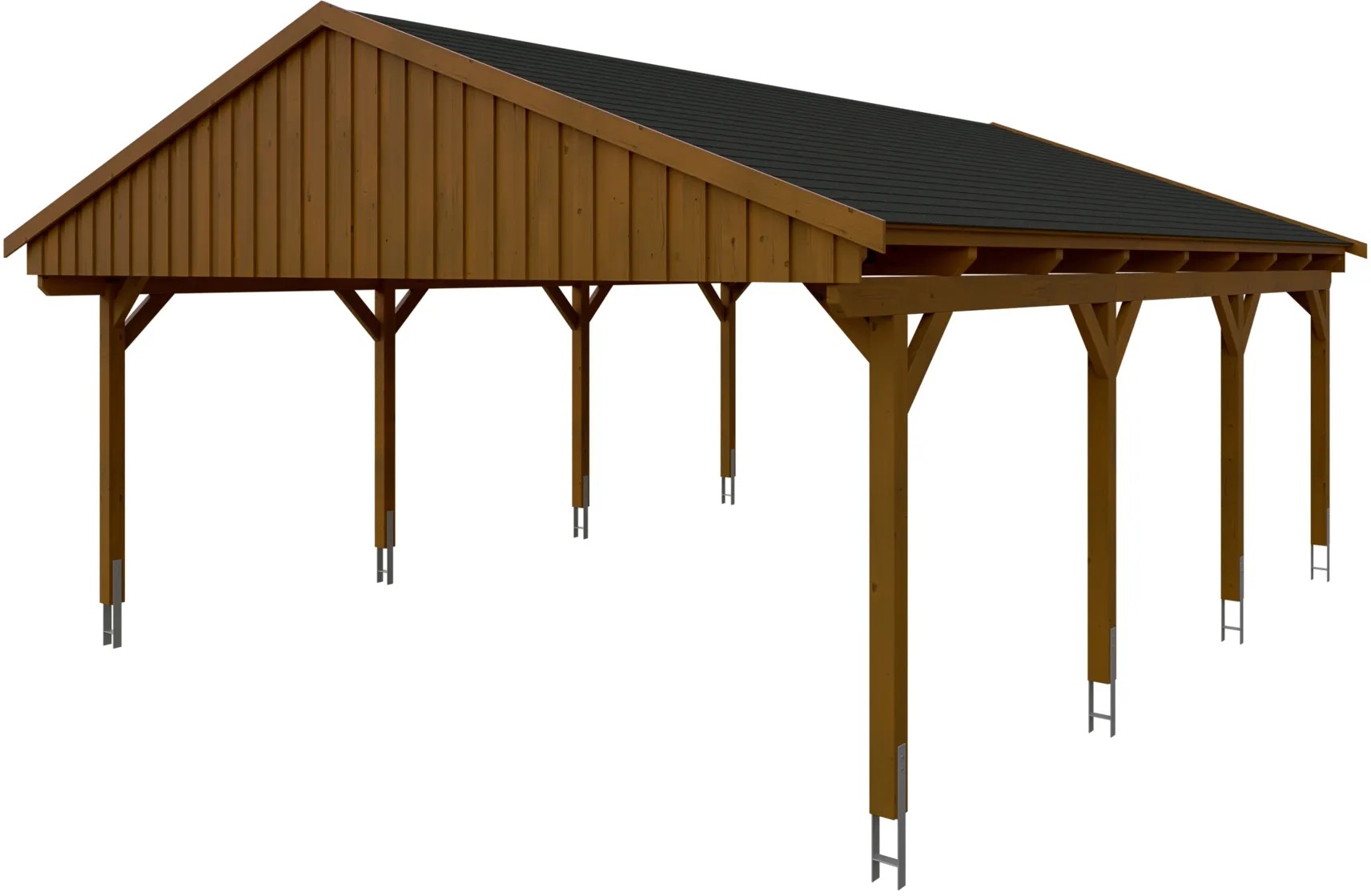 Skan Holz Prístrešok na auto Fichtelberg orech, čierne šindle 618 x 808 cm