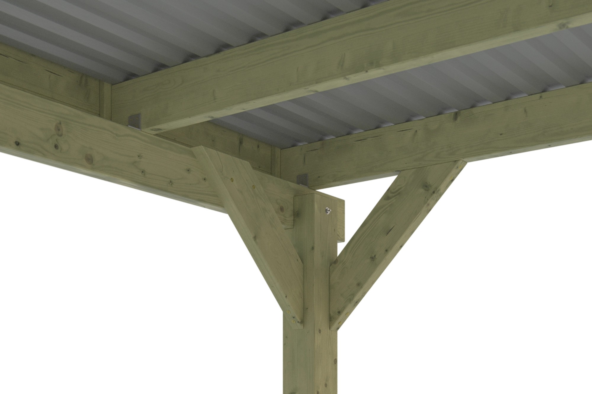 Konštrukcia je vyrobená z mäkkého impregnovaného dreva. Masívne smrekové alebo borovicové drevo, nie je technicky vysušené, zelenkavú farbu získava z metalických solí obsiahnutých v impregnačnom činidle. Činidlo chráni drevo proti napadnutiu hubami a hmyzom. UV ochrana nie je súčasťou. Vďaka impregnácii má drevo vyššiu zvyškovú vlhkosť. Následné vysychanie môže viesť k vytekaniu živice, krúteniu alebo tvorbe trhlín, čo však nepredstavuje žiadnu statickú nevýhodu a predstavuje prirodzenosť použitých materiálov.