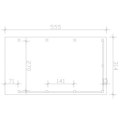 Vonkajšia hĺbka vr. presah strechy: 555 cm