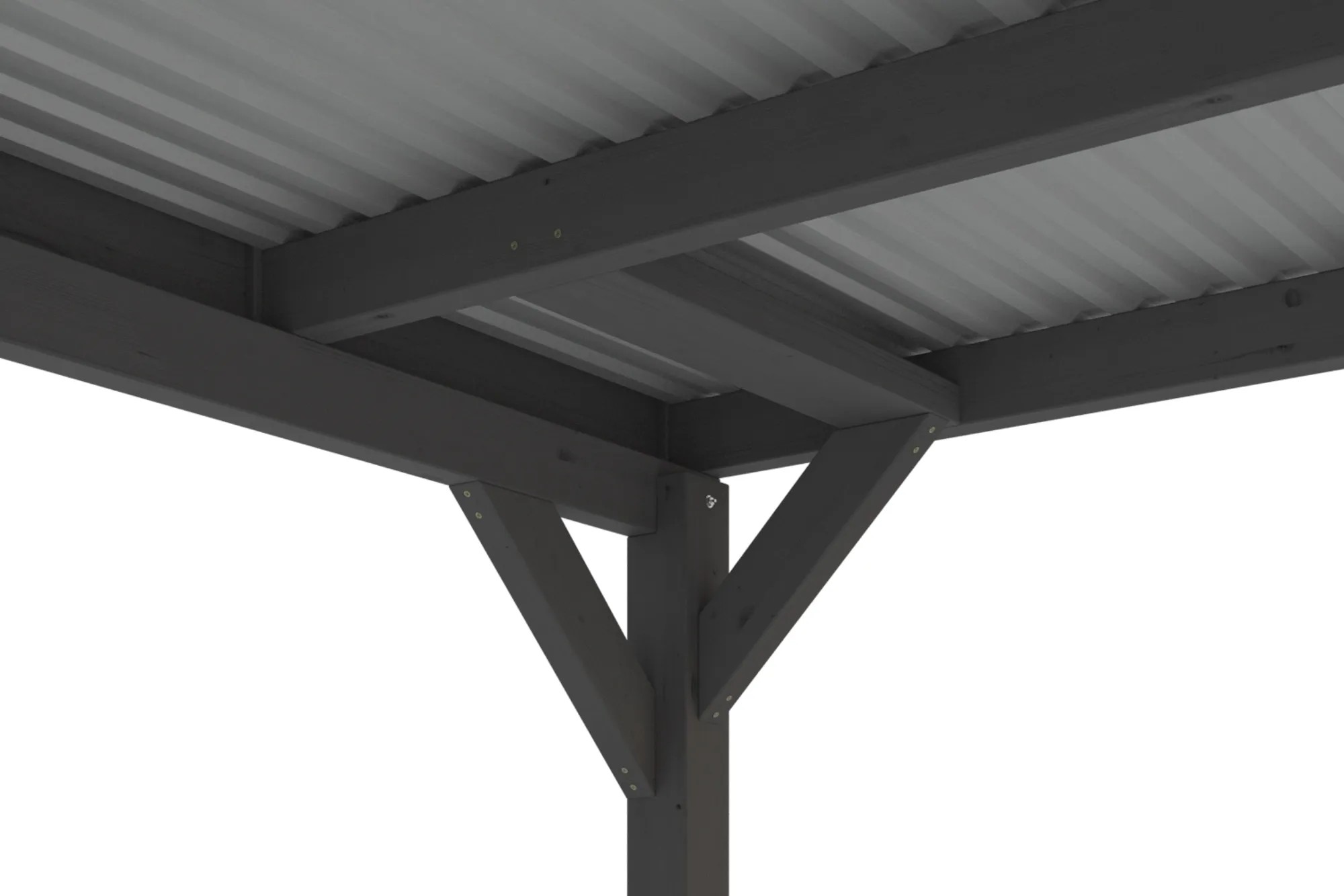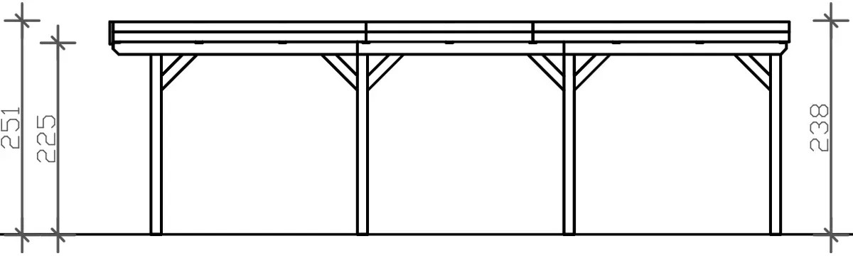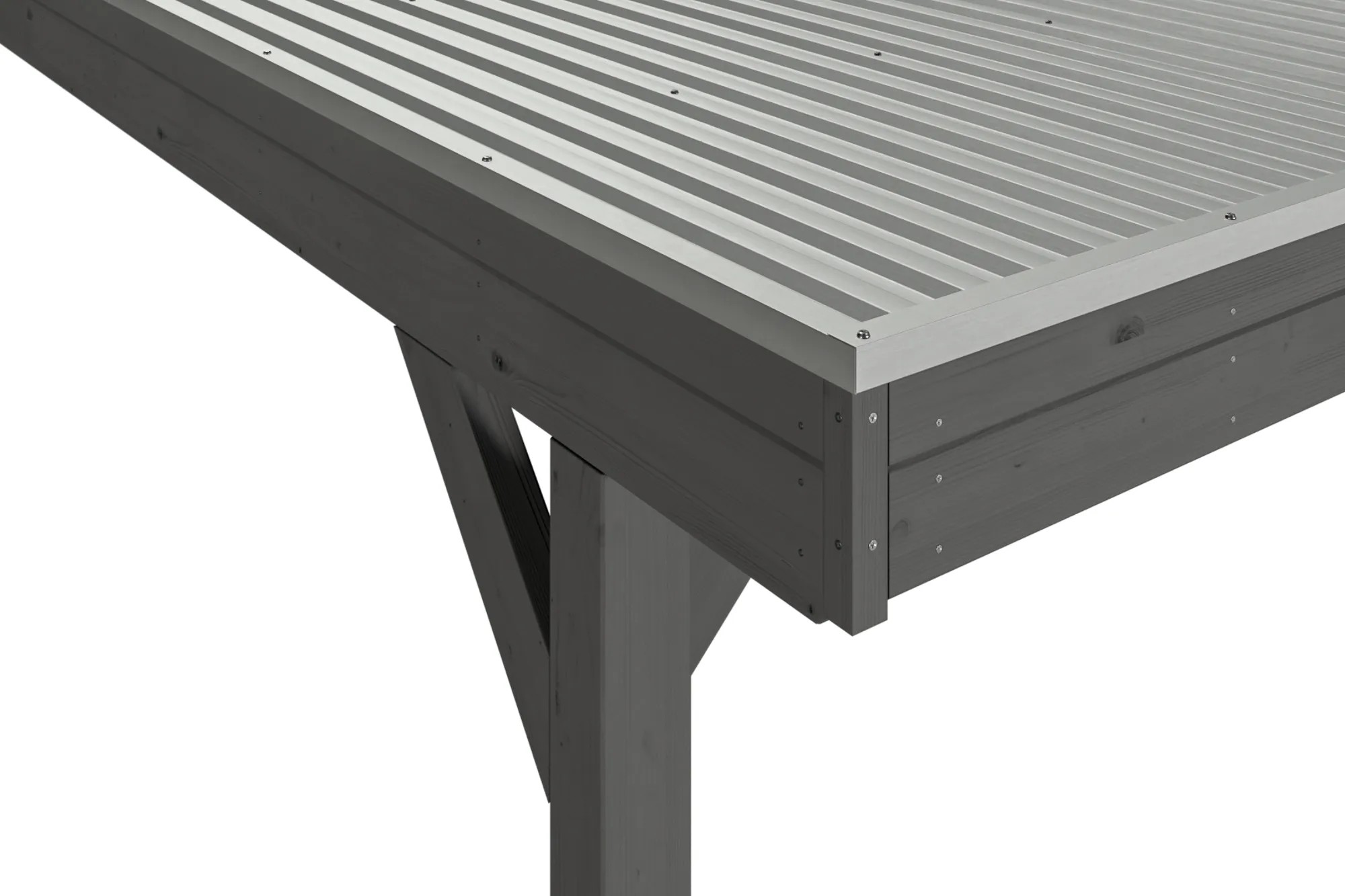 Prístrešky na auto Skan Holz Grunewald sú vyrobené z vysušeného smrekového dreva lepeného v niekoľkých vrstvách. Táto zmes je odolnejšia proti poveternostným vplyvom a je menej náchylná na praskanie ako prirodzené drevo. Stĺpiky prístrešku o rozmere 12 x 12 x 220 cm sú dodávané vrátane ukotvenia v tvare písmena H. 60 cm dlhé H-kotvy sú vyrobené z pozinkovanej plochej ocele na zabetónovanie do vlastného bodového základu. Kotvy pevne spájajú stĺpiky s podkladom a zaručujú vysokú stabilitu. Plochá strecha prístrešku je k dispozícii v dvoch variantoch - z hliníkových panelov (horná strana antracitová, spodná strana svetlo sivá) s trapézovým profilom (ALU) alebo s 19 mm strešným debnením s perodrážkou s dostatočným množstvom EPDM fólie. Strešná krytina z hliníkových panelov je nerozbitná a odolná proti krúpam, môže byť ale hlučná pri daždi. Je vysoko stabilná a tvarovo stála aj pri vysokých povrchových teplotách. Strecha je dodávaná s plastovými zvodmi.