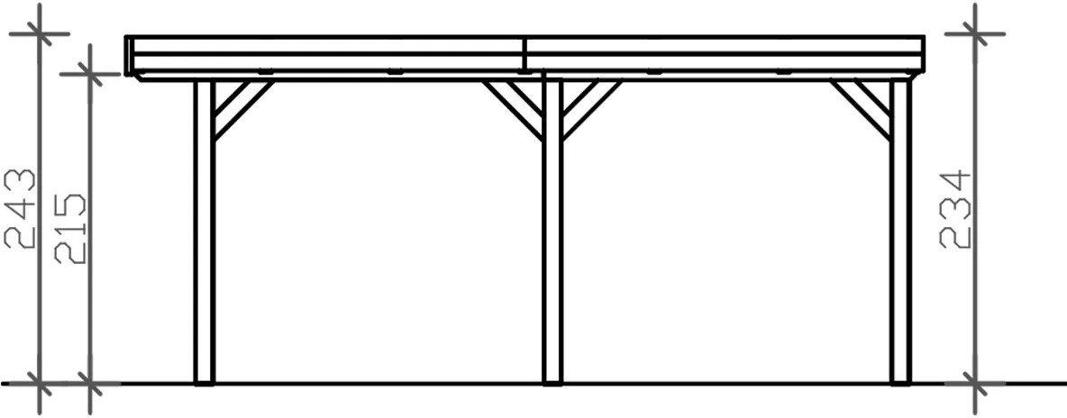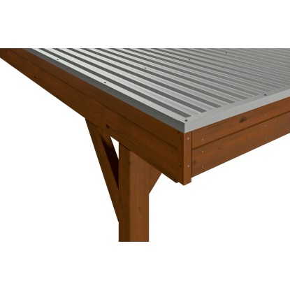 Prístrešky na auto Skan Holz Grunewald sú vyrobené z vysušeného smrekového dreva lepeného v niekoľkých vrstvách. Táto zmes je odolnejšia proti poveternostným vplyvom a je menej náchylná na praskanie ako prirodzené drevo. Stĺpiky prístrešku o rozmere 12 x 12 x 220 cm sú dodávané vrátane ukotvenia v tvare písmena H. 60 cm dlhé H-kotvy sú vyrobené z pozinkovanej plochej ocele na zabetónovanie do vlastného bodového základu. Kotvy pevne spájajú stĺpiky s podkladom a zaručujú vysokú stabilitu. Plochá strecha prístrešku je k dispozícii v dvoch variantoch - z hliníkových panelov (horná strana antracitová, spodná strana svetlo sivá) s trapézovým profilom (ALU) alebo s 19 mm strešným debnením s perodrážkou s dostatočným množstvom EPDM fólie. Strešná krytina z hliníkových panelov je nerozbitná a odolná proti krúpam, môže byť ale hlučná pri daždi. Je vysoko stabilná a tvarovo stála aj pri vysokých povrchových teplotách. Strecha je dodávaná s plastovými zvodmi.