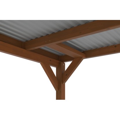 Prístrešok na auto Skan Holz Grunewald s plochou strechou je vyrobený z vysušeného smrekového dreva lepeného v niekoľkých vrstvách. Táto zmes je odolnejšia proti poveternostným vplyvom a je menej náchylná na praskanie ako prirodzené drevo. Prístrešky Grunewald sú k dispozícii v rôznych veľkostných a farebných variantoch - prírodný (neošetrený), orech, dub svetlý, bridlicovo sivý a biely. V prípade prírodného (neošetreného) dreva je bezpodmienečne nutný pravidelný ochranný náter proti napadnutiu hubami a hmyzom. Pred montážou je nutné použiť ochranný náter zo všetkých strán proti napadnutiu hubami a hmyzom, ochranu pred sfarbením a poškodením UV žiarením ako druhú vrstvu a ako finálny náter kvalitnú lazúru alebo farbu na drevo. Farebné varianty náterov sú už všetkými potrebnými nátermi opatrené.