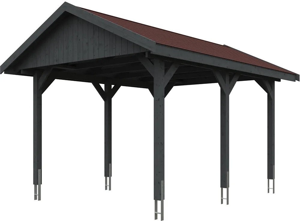Skan Holz Prístrešok na auto Wallgau brid.-sivý, červené šindle, 380 x 500 cm
