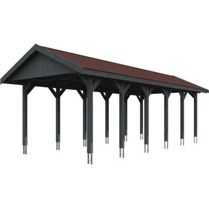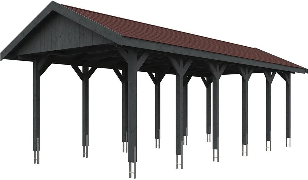 Skan Holz Prístrešok na auto Wallgau brid.-sivý, červené šindle, 380 x 900 cm