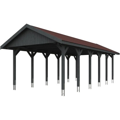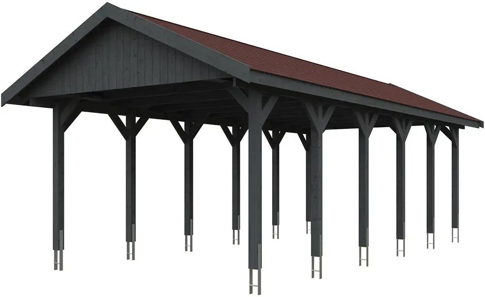 Skan Holz Prístrešok na auto Wallgau brid.-sivý, červené šindle, 430 x 900 cm