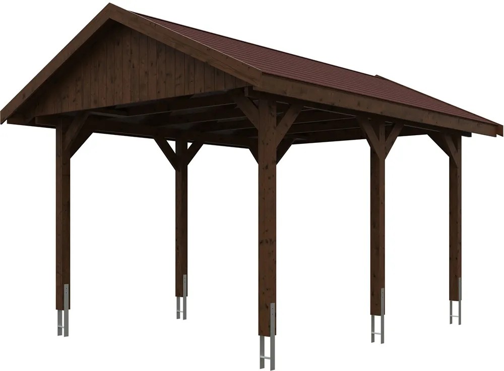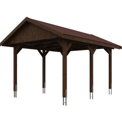 Skan Holz Prístrešok na auto Wallgau orech, červené šindle, 380 x 500 cm