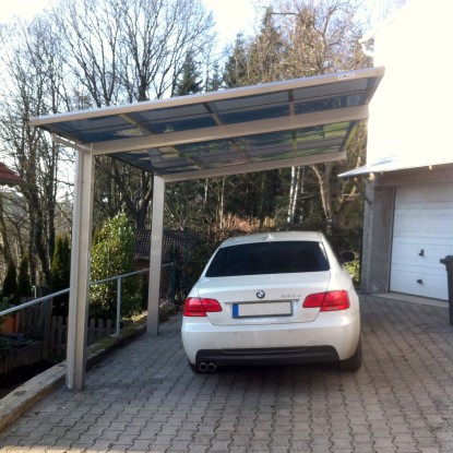 Do prístrešku pre auto je v zadnom pozdĺžnom profile integrovaný odkvap so zvodom.