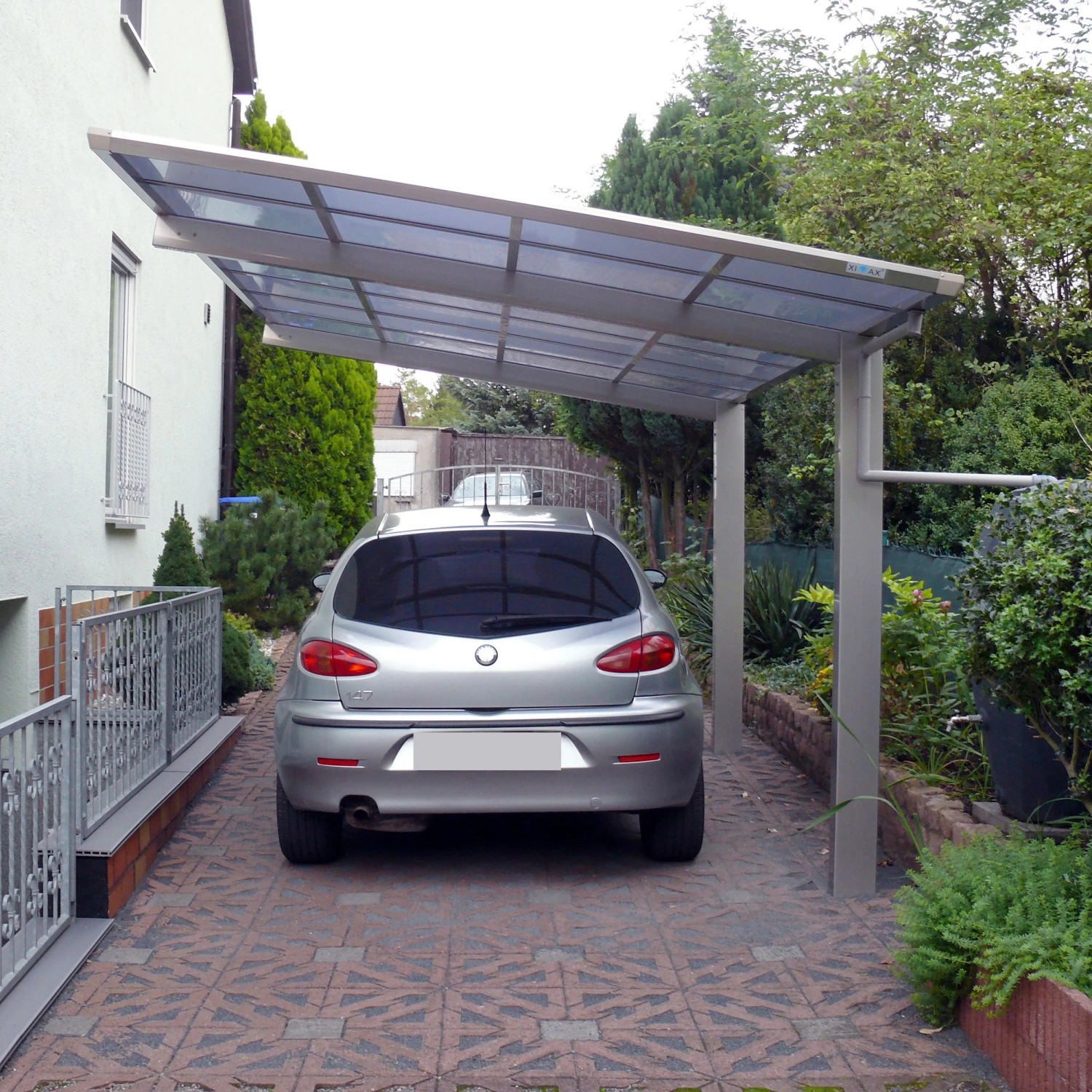 Do prístrešku pre auto je v zadnom pozdĺžnom profile integrovaný odkvap so zvodom.