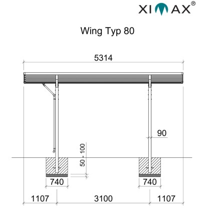 Ximax Dizajnový prístrešok na auto Wing Typ 80 strieborná 531,4 x 275,7 cm
