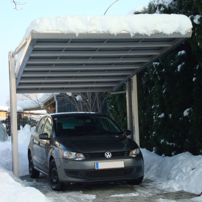 Do prístrešku pre auto je v zadnom pozdĺžnom profile integrovaný odkvap so zvodom.