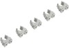 Sivé zverné spony EN 25 slúžia na upevnenie tuhých chráničiek. Skrutkový spoj umožňuje ich inštaláciu na upevňovaciu lištu a vzájomné spájanie. Zverné spony sú vhodné na montáž na omietku. Balenie obsahuje 5 kusov.