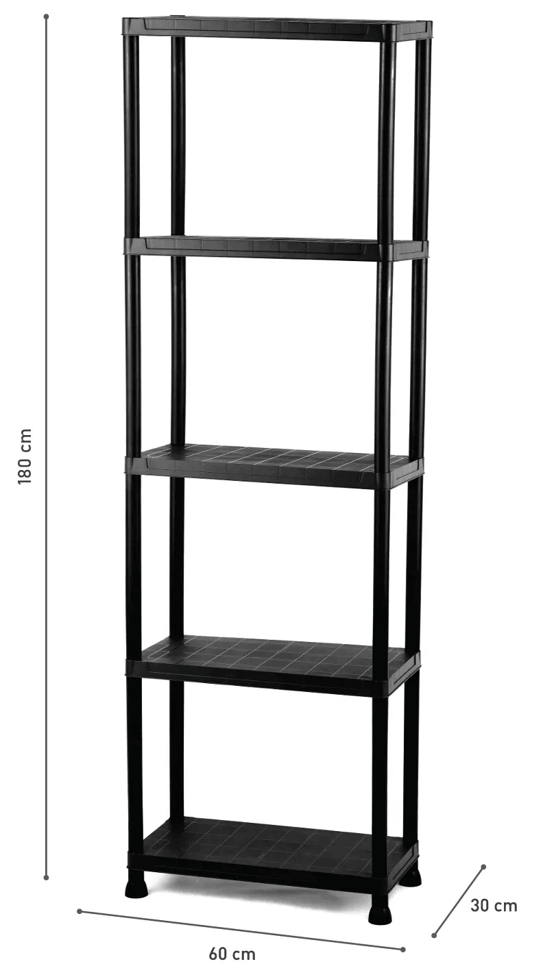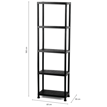 Igotrend Plastový regál, 5 políc, čierna, 60 x 30 x 180 cm