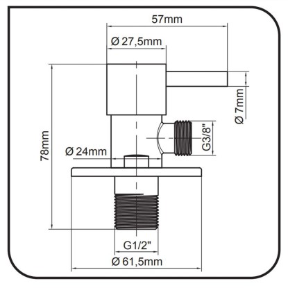baliv Dizajnový rohový ventil EV-3410 s páčkou, chróm, 1/2" x 3/8"