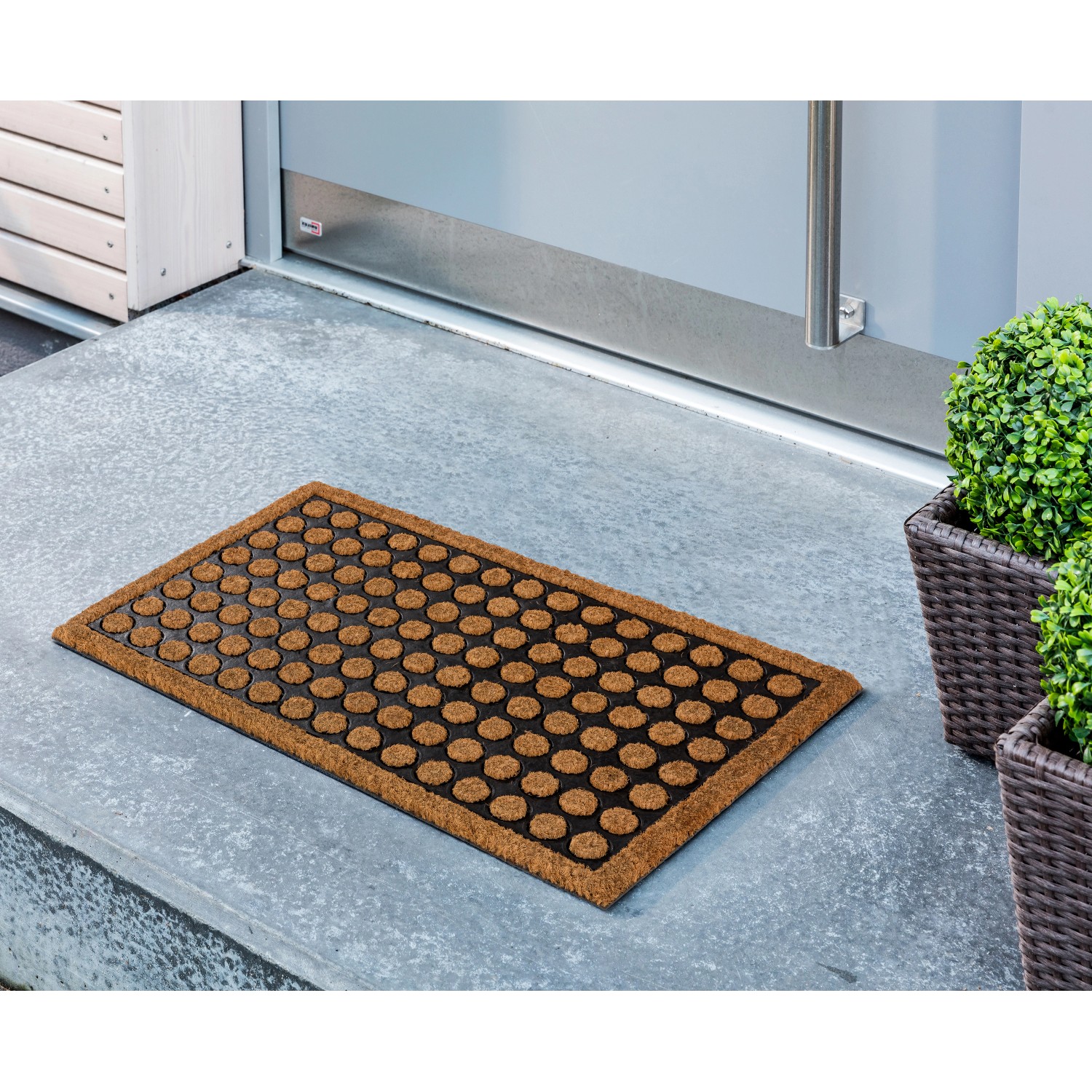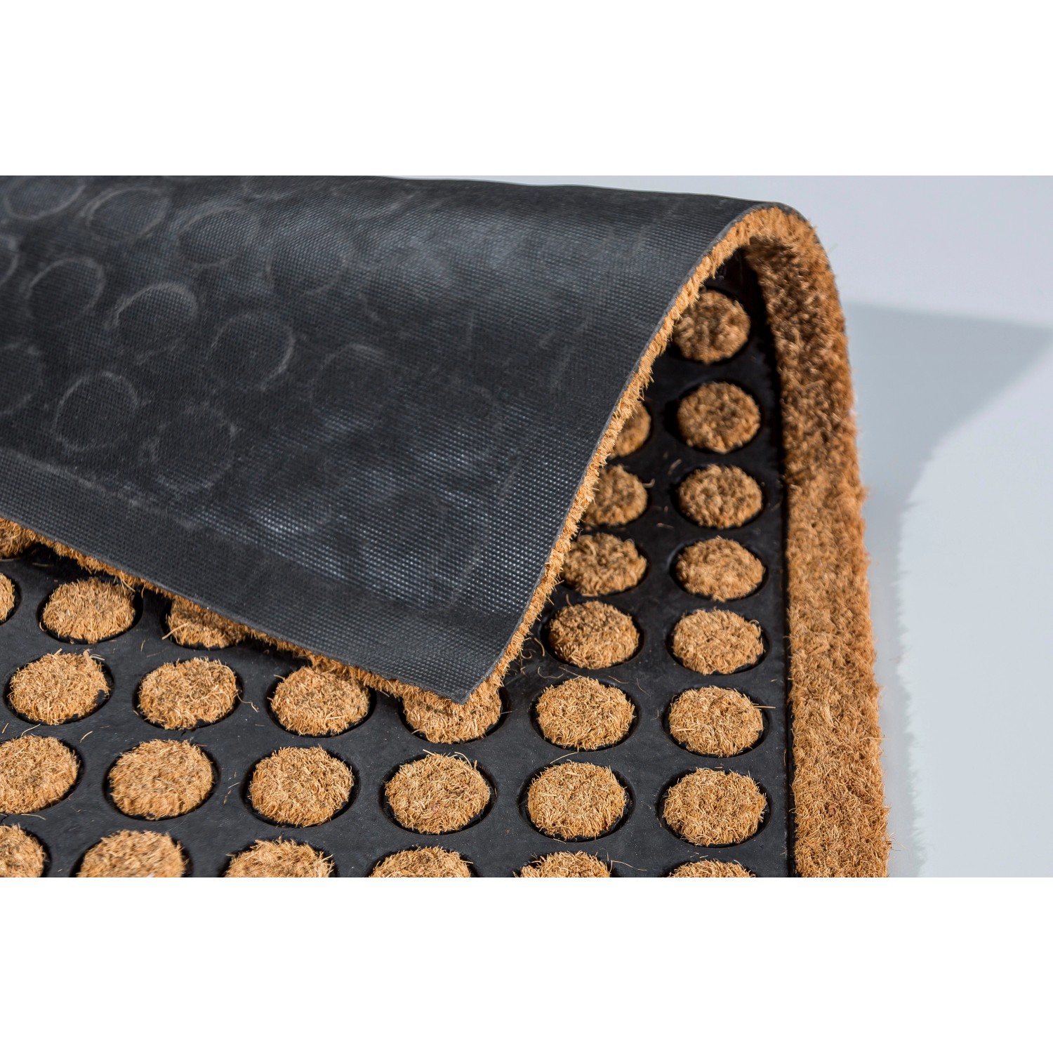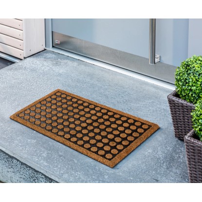 Rohožka Coco Home je dekoratívna gumená a kokosová rohožka vyrobená z prírodných materiálov, ktorá sa hodí pred každé domové dvere. Vďaka kokosovým štetinám stiera dokonca hrubé nečistoty z topánok a pritom zachytáva aj jemné nečistoty. Vinylová rubová strana rohožky sa vyznačuje protišmykovým účinkom a zabraňuje tak neželanému posúvaniu gumenej rohožky. Rohožku možno použiť aj ako odkladací priestor pre mokré topánky.