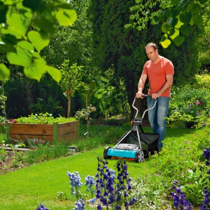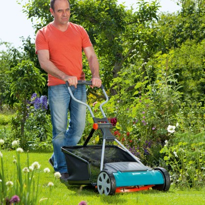 Gardena Comfort ručná vretenová kosačka na trávu 400 CF pracuje na veľmi jednoduchom princípe a zaisťuje presný strih trávy ako nožnicami. Táto ručná kosačka na trávu je navyše veľmi šetrná k životnému prostrediu, nepotrebujete žiadnu elektrinu ani benzín. Bezdotyková technológia kosenia, kedy sa nožový valec a spodné nože nedotýkajú, zaisťuje obzvlášť tichý chod. Komfortný tvar rukoväte umožňuje ľahké rolovanie a kosenie, prídavný deflektor zamedzuje odlietavaniu pokosenej trávy do výšky. Požadovanú výšku kosenia je možné veľmi ľahko nastaviť v štyroch polohách na dobre viditeľnej stupnici a veľké kolieska so špeciálnym profilom uľahčujú riadenie a umožňujú dobrú trakciu. Vďaka sklopnej konštrukcii je možné Gardena Comfort vretenovú kosačku 400 CF úsporne uložiť a prepravovať. Rukoväť na prenášanie slúži na ľahké zdvihnutie kosačky. So šírkou kosenia 40 cm je ručná kosačka ideálna pre plochy 150 - 250 m2. Súčasťou dodávky je aj zberný kôš na trávu s objemom 35 l, ktorý zachytáva pokosenú trávu a je možné ho vybrať a pripevniť bez náradia.