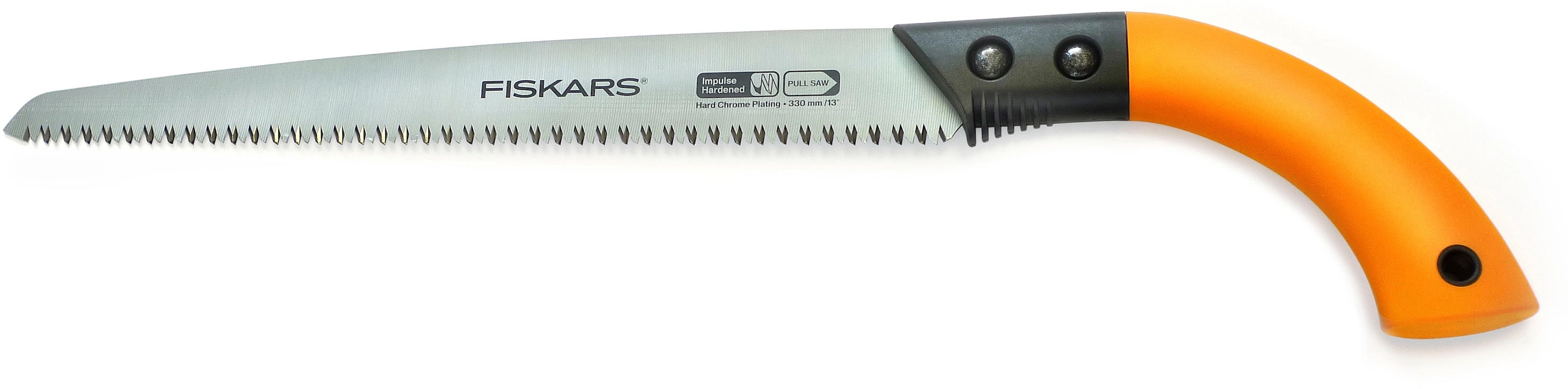 Fiskars pílka prerezávacia je záhradná pílka s pevnou čepeľou, ktorá umožnuje ľahké rezanie dreva až do priemeru 120 mm. Má veľmi účinný tvar zubov pre rýchle a ľahké rezanie surového dreva. Držadlo je potiahnuté mäkkým povrchom a je ergonomicky zahnuté. Čepeľ sa dá do rezu pri ťažnom pohybe.