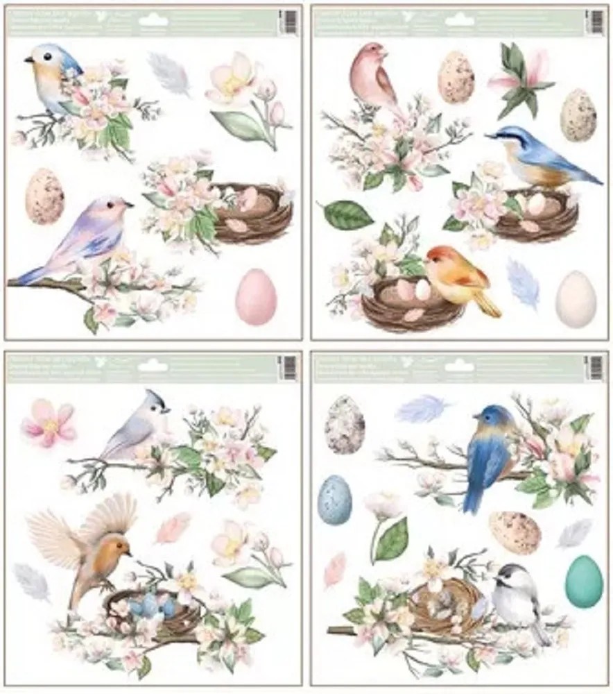 Anjel Přerov Dekoračné okenné fólie vtáčiky s glitrami, mix dekor, 30 x 33,5 cm