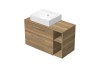 INTEDOOR kúpeľňová skrinka BEE s keramickým umývadlom na dosku je vyrobená z LTD 18 mm. Skrinka má dve zásuvky s funkciou pomalého dovierania Soft-Close a kryciu dosku o sile 1,8 cm. V hornej zásuvke je výrez na sifón. Umývadlo je umiestnené na ľavej strane skrine. Na pravej strane vedľa zásuviek je otvorená polica.