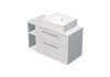 INTEDOOR kúpeľňová skrinka BEE s keramickým umývadlom na dosku je vyrobená z LTD 18 mm. Skrinka má dve zásuvky s funkciou pomalého dovierania Soft-Close a kryciu dosku o sile 1,8 cm. V hornej zásuvke je výrez na sifón. Umývadlo je umiestnené na pravej strane skrine. Na ľavej strane vedľa zásuviek je otvorená polica.