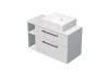INTEDOOR kúpeľňová skrinka BEE s keramickým umývadlom na dosku je vyrobená z LTD 18 mm. Skrinka má dve zásuvky s funkciou pomalého dovierania Soft-Close a kryciu dosku o sile 1,8 cm. V hornej zásuvke je výrez na sifón. Umývadlo je umiestnené na pravej strane skrine. Na ľavej strane vedľa zásuviek je otvorená polica.