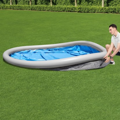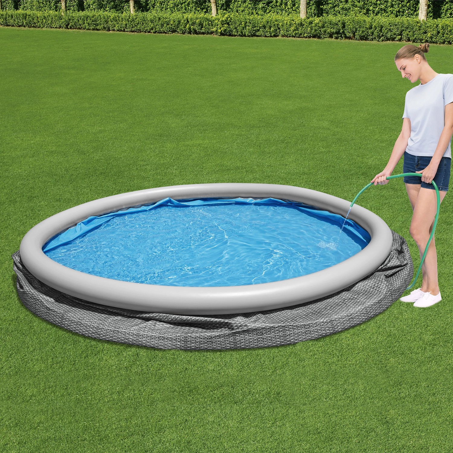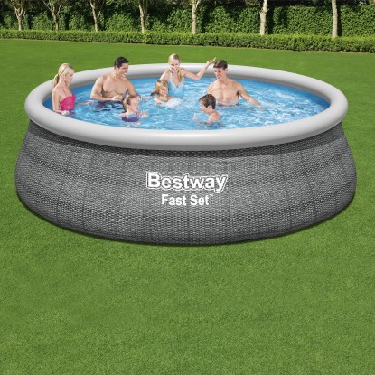S touto ľahko zostaviteľnou bazénovou súpravou Bestway Fast Set bude bazén pripravený na kúpanie behom okamihu! Je to ľahké - nájdite rovnú plochu, nafúknite horný prstenec a bazén už sa po naplnení sám zarovná a postaví. Akonáhle kúpacia sezóna skončí, vodu zase ľahko vypustíte pomocou integrovaného vypúšťacieho ventilu počas chvíle. Potom už len stačí bazén zložiť a uskladniť na budúcu sezónu.