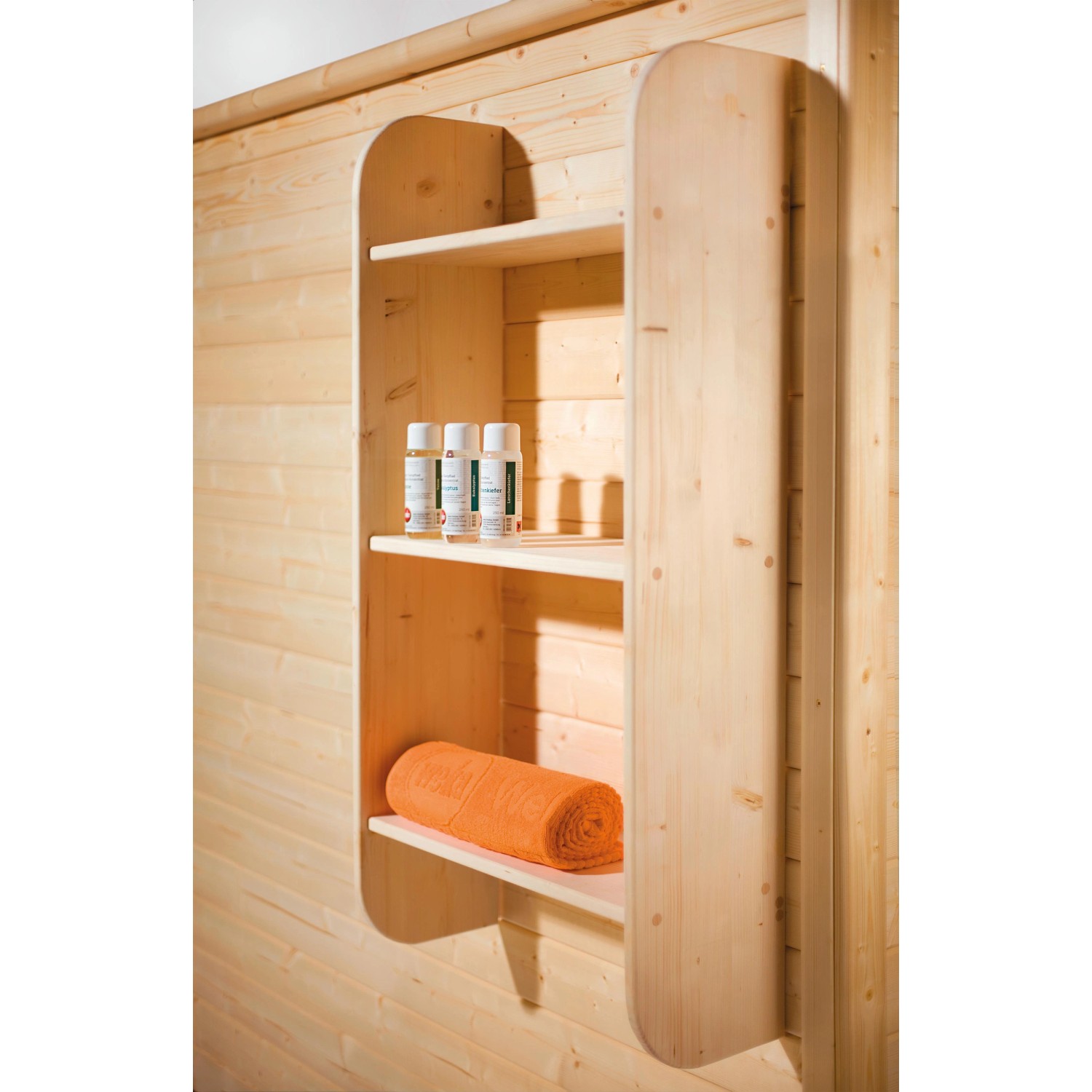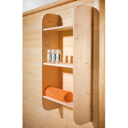 Či už uteráky, masážna kefa alebo ošetrujúca emulzia: Praktický skriňový regál od Weka poskytuje úložný priestor pre vaše obľúbené wellness pomôcky. Skladá sa z troch priehradiek a je možné ho upevniť do sauny alebo infračervenej kabíny. Vďaka tomu budete mať uteráky a pod. vždy poruke.