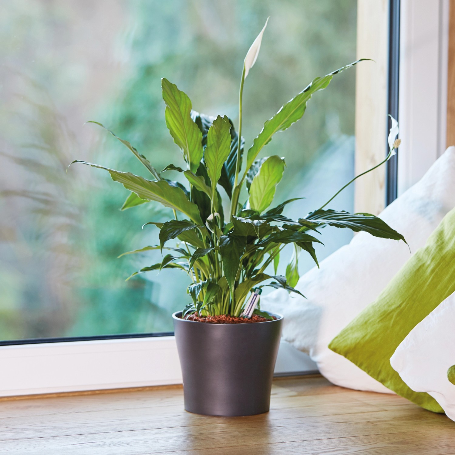 Optimálne množstvo zálievky činí zhruba 1/4 objemu kvetináča. Na zistenie ideálneho času pre zálievku použite SERAMIS indikátor zálievky, ktorý zapichnite do koreňového balu až k spodnému okraju indikačného poľa. Rastlina potrebuje ďalšiu zálievku, ak sa farba indikačného poľa zmení z modrej na červenú farbu. (Viac informácií na použitie SERAMIS indikátora zálievky nájdete na jeho obale.) Vyvarujte sa preliatiu, pretože premokrenie môže viesť k poškodeniu rastliny.