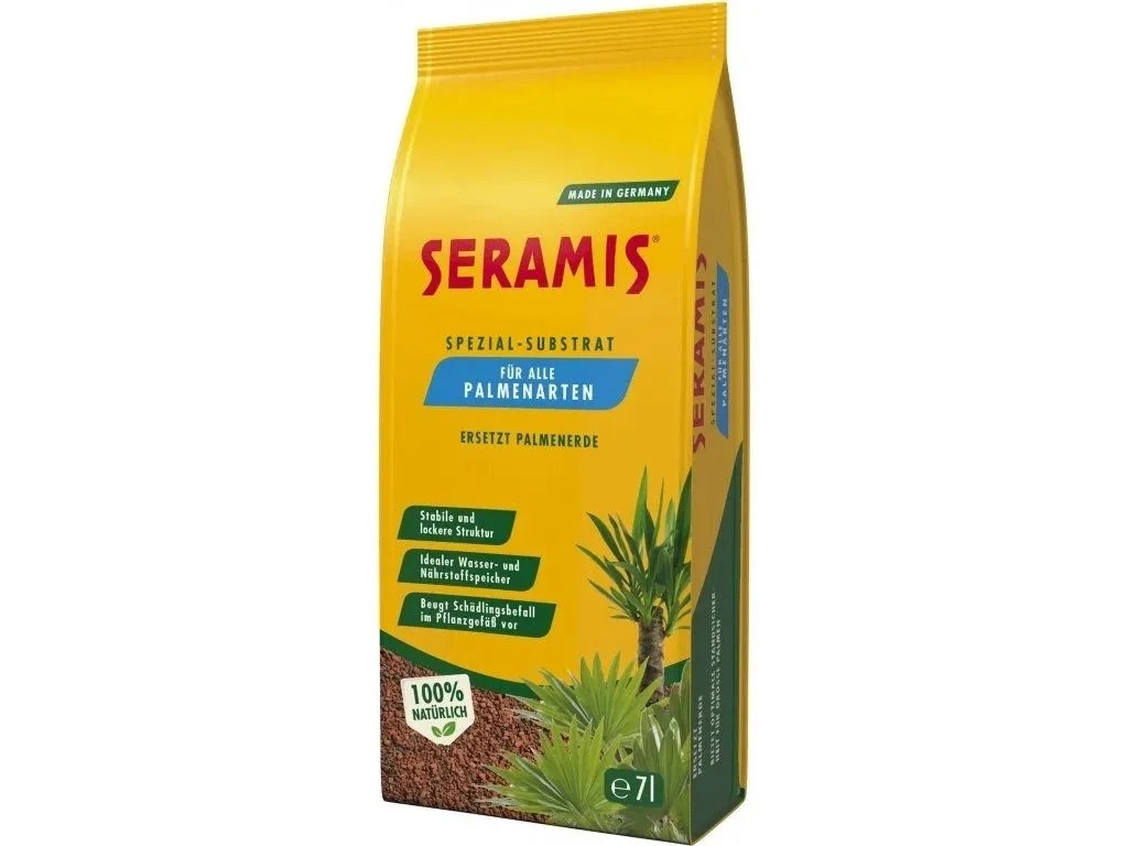 SERAMIS substrát pre palmy predstavuje perfektnú a čistú alternatívu ku klasickým substrátom. Expandovaný granulát z westerwaldského ílu disponuje vysokou absorpčnou schopnosťou a slúži ako ideálny zásobník vody a živín a súčasne zabraňuje premokreniu. Cyprá, vzdušná a stabilná štruktúra substrátu zaisťuje optimálne prevzdušnenie koreňov a bezpečnú oporu vysokých paliem.