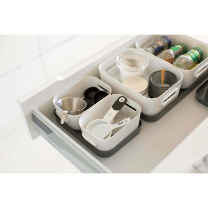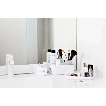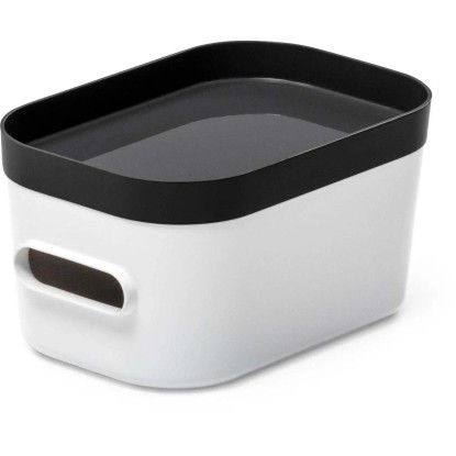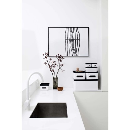 Moderný, univerzálny úložný ložný box pre domácnosť SmartStore Compact je určený na uloženie kozmetických a hygienických potrieb v kúpeľni alebo kancelárskych pomôcok v domácej kancelárii. Vďaka štýlovému dizajnu je možné tento box umiestniť aj do viditeľného priestoru. Vysoko kvalitný materiál, ktorý je možné ľahko umyť ručne alebo v umývačke riadu. Veká sú k dostaniu zvlášť. Rad SmartStore Compact je modulárny a stohovateľný, hlboký okraj uľahčuje a zaisťuje stohovanie.