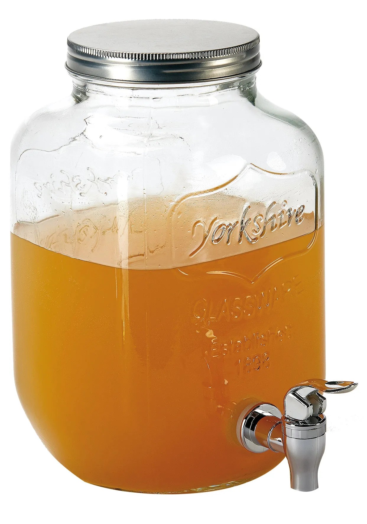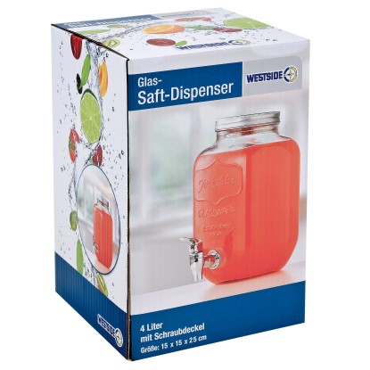Sklenený zásobník na šťavy so skrutkovým uzáverom. Objem 4 l.