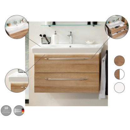 Séria kúpeľňového nábytku FACKELMANN MILANO zaujme svojim harmonickým, atraktívnym a vkusným dizajnom v príjemných a upokojujúcich farbách. Kúpeľňový nábytok série MILANO je k dispozícii v 3 farebných prevedeniach - biela vo vysokom lesku, sukatý dub a kombinácia biela vo vysokom lesku a sukatý dub. Korpusy skriniek majú matnú bielu farbu a priečky a zadné steny majú striebornosivú farbu. Všetok kúpeľňový nábytok série MILANO je možné jednoducho kombinovať podľa ľubovôle medzi sebou. Okrem kúpeľňového nábytku v tejto sérii nájdete aj umývadlá, doplnkové osvetlenie a zrkadlá.