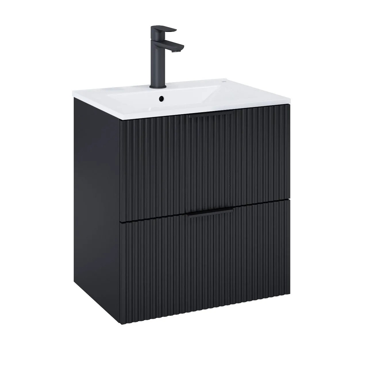 Roca Umývadlová skrinka Reef Basic 2Z, čierna mat, 63,5 x 60 x 47,2 cm