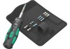 Súprava je dodávaná v robustnej a kompaktnej textilnej taške. Vďaka tomu je náradie vždy po ruke. Textilné vrecko má na zadnej strane flaušovú zónu. Textilné vrecko je možné pripevniť ku komponentom Wera 2go pomocou dodávaného samolepiaceho pásika na suchý zips. Alebo aj na stenu, policu či dielenský vozík.