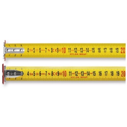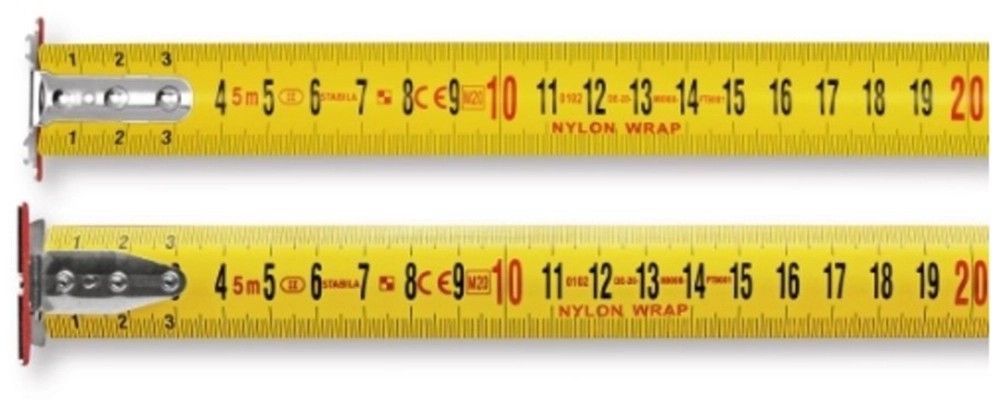 Silný pásik je vysoko stabilný a tuhý a je možné ho vytiahnuť až na 3 metre bez zlomenia. Extra veľký hák umožňuje ľahké zavesenie v rôznych polohách merania. Integrované očko v háku zabraňuje skĺznutiu popruhu. Obojstranná stupnica zaisťuje optimálnu čitateľnosť a pohyblivý hák umožňuje presné vnútorné a vonkajšie meranie. Silná pružina pre automatické a výkonné prevíjanie pásky.