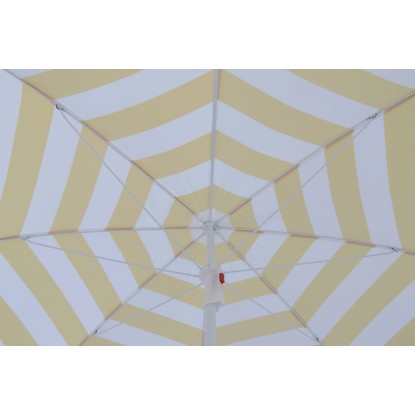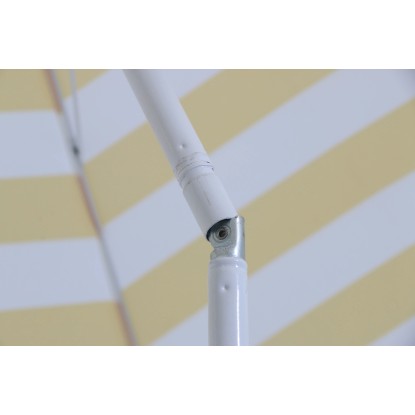 Vďaka stredovej tyči bude slnečník držať stabilne aj za veterných podmienok. Konštrukciu slnečníka tvorí rám z ocele. Snímateľný a prateľný poťah je vyrobený z odolného polyesteru (140 g/m2), ktorý je svetlostály a materiál si tak aj pri dlhodobom pobyte na silnom slnku zachová svoju farbu.