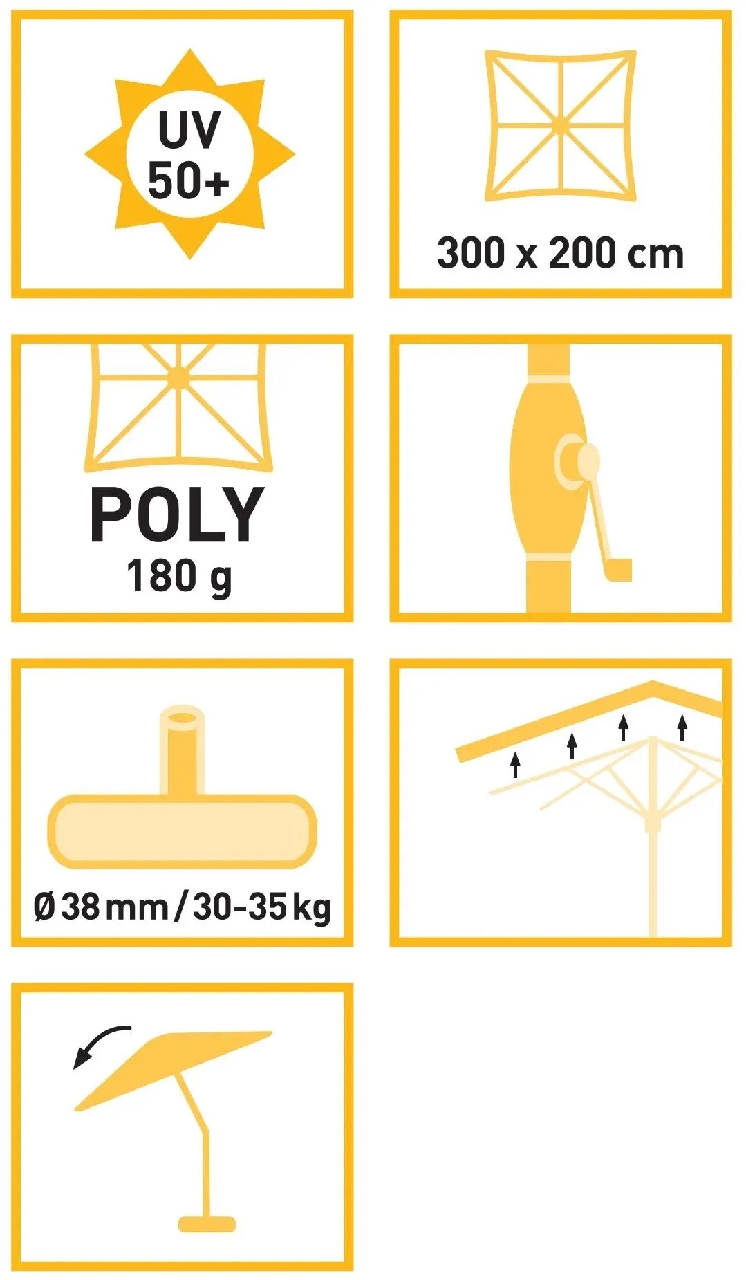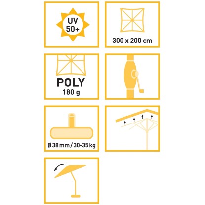 | Tvar slnečníka: | Obdĺžnikový |