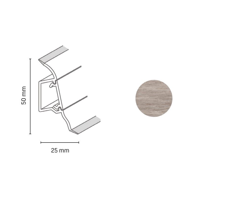 Systémové lišty SLK 50 sú vhodné pre laminátové podlahy, elastické krytiny, LVT, PVC a CV. Vyrobené z PVC s elastickými manžetami pri stene a podlahe. Integrovaný káblový kanál. Odnímateľný predný pás lišty pre jednoduchú manipuláciu s káblami. Veľký výber moderných dekorov. Jednoduchá montáž skrutkami alebo lepením.