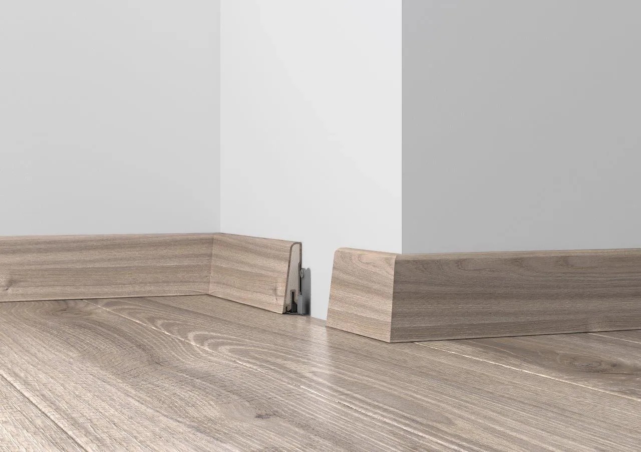 Döllken Profiles lišty USL 60 Clip sú vhodné najmä pre LVT, PV a PVC podlahy. Vyrobené z peneného PVC (všetky prísady vyhovujú nariadeniu REACH). Elastická mäkká manžeta na spodnej hrane lišty. Možnosť utesnenia tmelom. Nerezové Clipsy. Odolné proti vlhkosti. Rad dekorov a vysoko kvalitná optika.