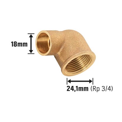 Spájkovacie koleno 90° 4090G červený bronz, pr. 18 mm x 24,1 mm (Rp 3/4), 1 ks