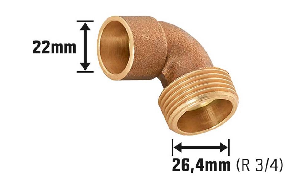 Koleno taktiež ponúka redukciu z priemeru rúrky 22 mm na vonkajší závit 26,4 mm (R 3/4). Pre montáž sú tvarovka a rúrka pripájané a zoskrutkované dokopy. Armatúra je vhodná aj na inštaláciu pitnej vody.