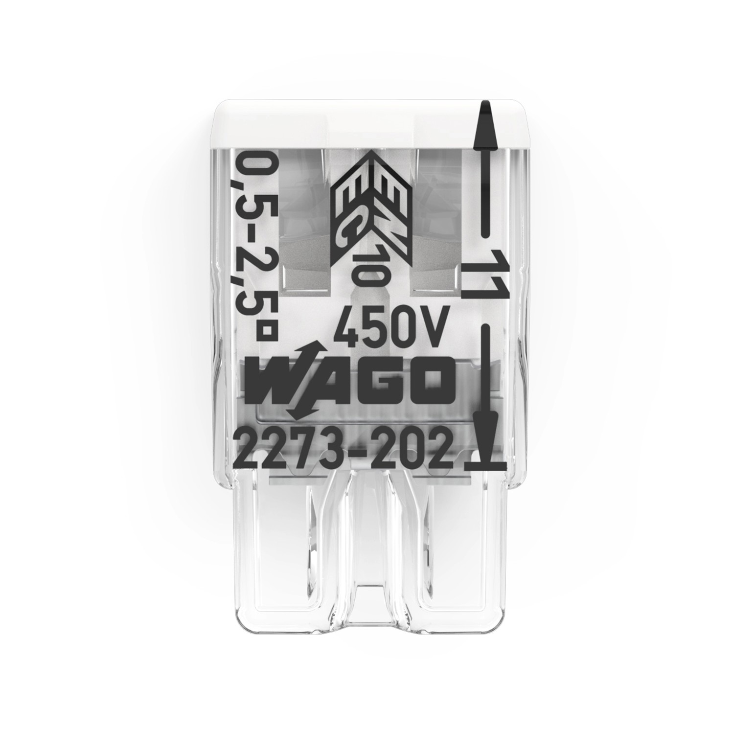 V inštalačných škatuliach je všeobecne málo miesta. Pokiaľ sa tu stretávajú pevné vodiče a nie je prioritou časté rozopínanie spoja, je rad 2273 tou správnou voľbou. Oproti pôvodnej sérii 273 bola upravená vnútorná kontaktná časť. Výsledkom je zmenšenie vonkajších rozmerov o 50 % a ľahšie zapojenie/odpojenie vodiča. Priehľadné telo navyše dáva istotu správnej dĺžky odizolovania vodiča a jeho dostatočného zasunutia do pružinového spoja PUSH WIRE.