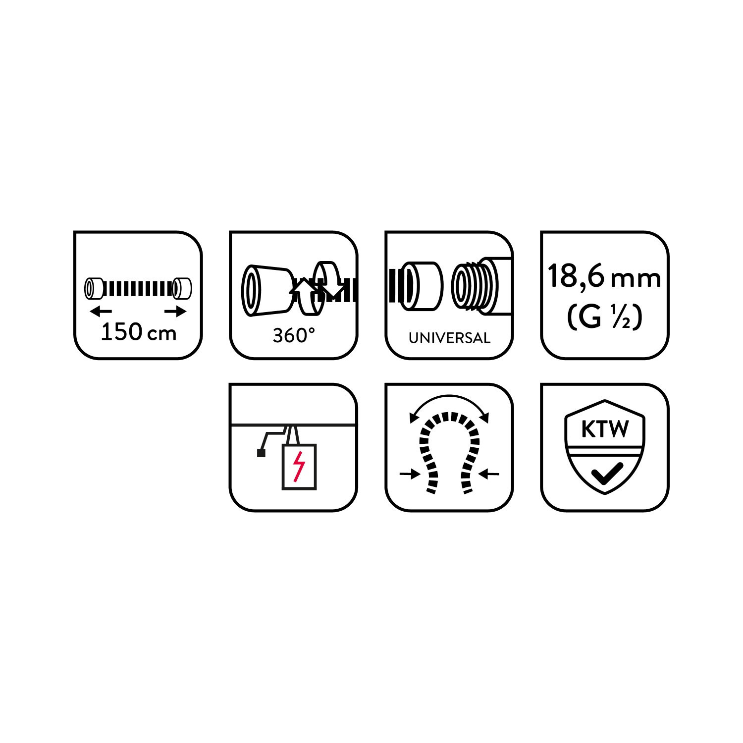 Bezpečnostná kovová sprchová hadica z pochrómovanej ušľachtilej ocele, odolná proti zalomeniu a horúcej vode. So zámkom proti pretočeniu. Jednoduchá montáž.