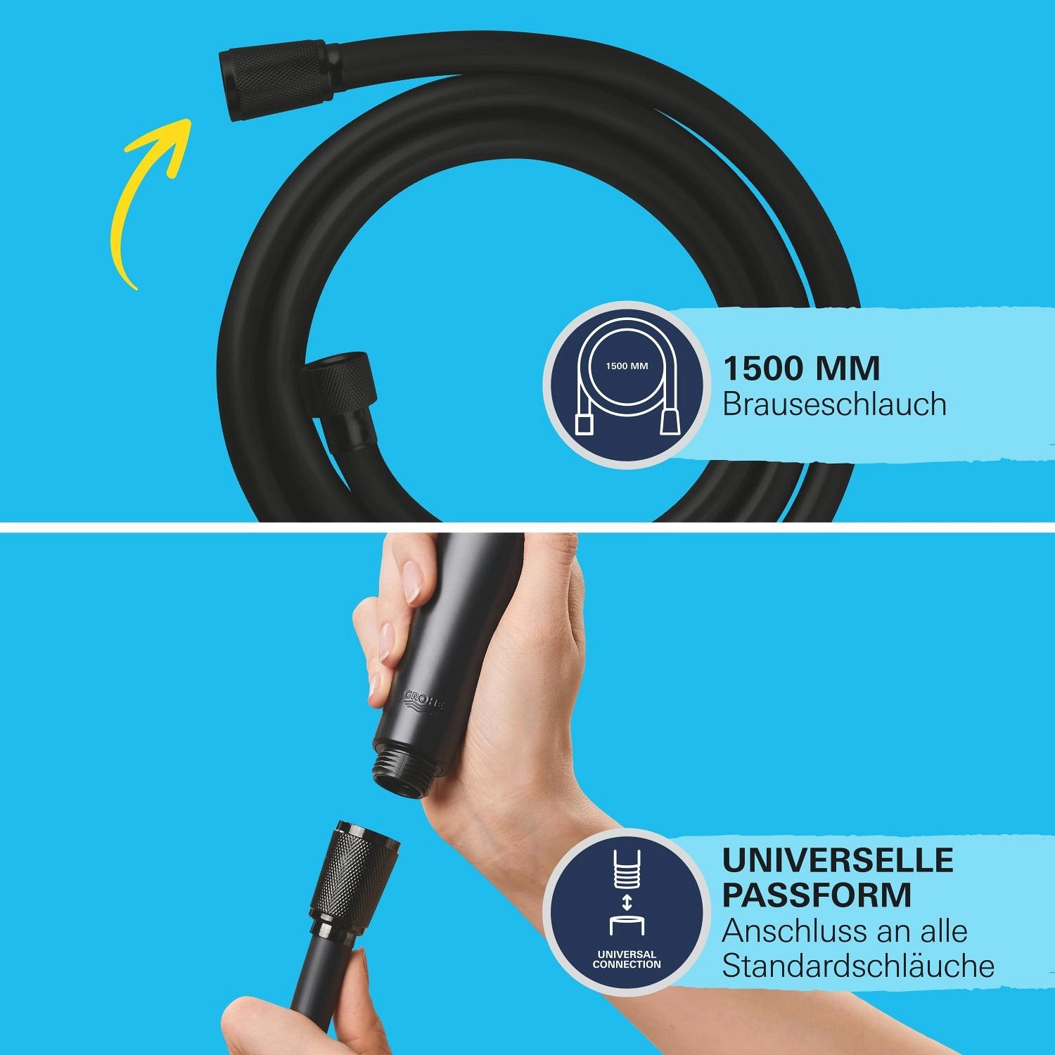 Vďaka svojmu nadčasovému dizajnu sa táto hadica dokonale hodí k širokej škále výrobkov z rôznych kolekcií spŕch GROHE v matnej čiernej.