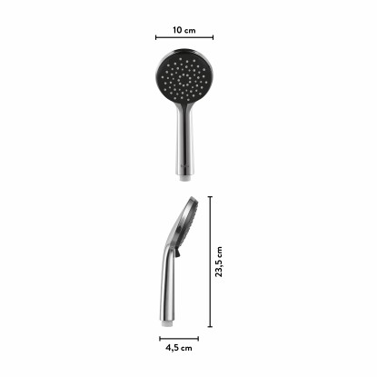 Ručná sprcha pochrómovaná, s 3 režimami striekania. S nopkami proti usadzovaniu vodného kameňa, pre rýchle a jednoduché čistenie. Vhodná pre všetky štandardné sprchové hadice.