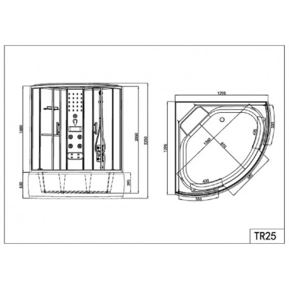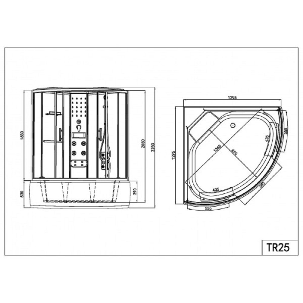 Kompletný hydromasážny sprchový box Cuba TR25 s rozmermi 130 x 130 x 215 cm. So strechou.