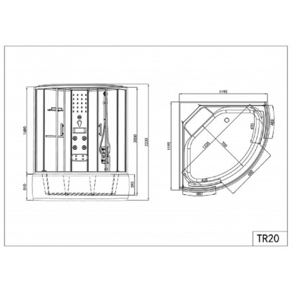 Kompletný hydromasážny sprchový box Salsa TR20 s rozmermi 120 x 120 x 215 cm. So strechou.