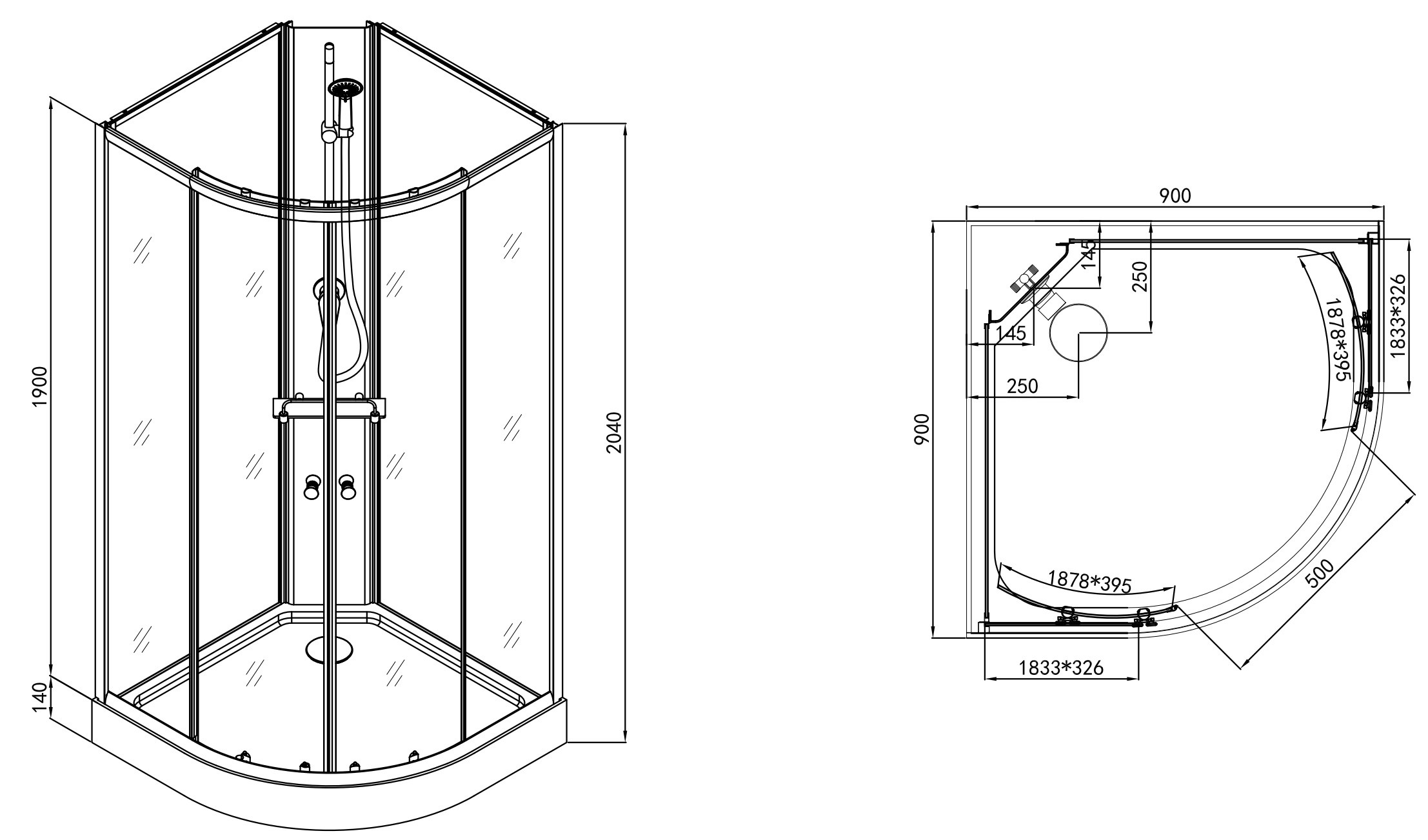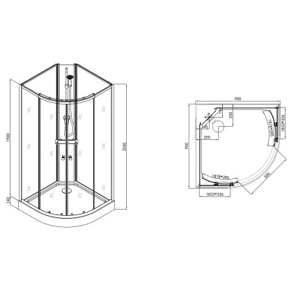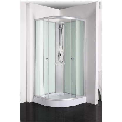 Kompletný sprchovací kút Sanotechnik Rio v tvare štvrťkruhu s rozmermi 90 x 90 x 204 cm. Bez strechy.