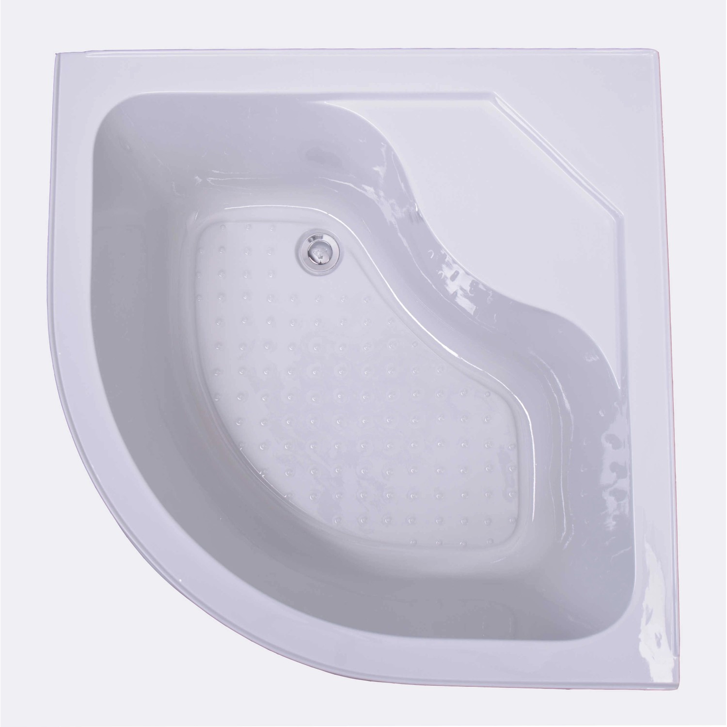 Štvrťkruhová sprchová vanička s rozmermi 90 x 90 x 45 cm s odnímateľným predným krytom, integrovanými nožičkami a sifónom pre jednoduchú montáž. Vanička je vyrobená z ABS plastu.