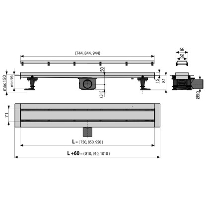 Alcadrain Podlahový žľab DOUBLE FIT & GO 750 mm
